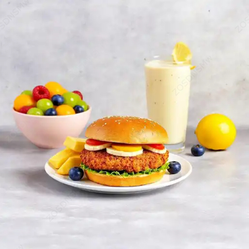 Licuado de Plátano, Vaso de Fruta y Sándwich