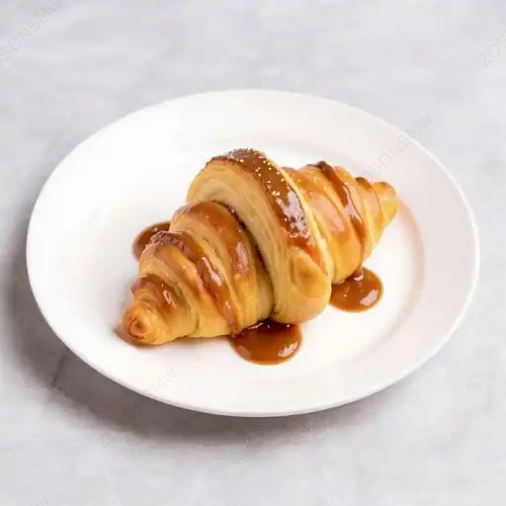 Cuernito con crema de cacahuate, de avellana, fresa y plátano
