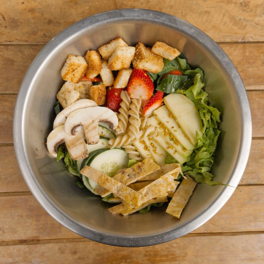 Diseña tu ensalada con una selección de bases de lechugas frescas, vegetales, proteínas y aderezos a elección.