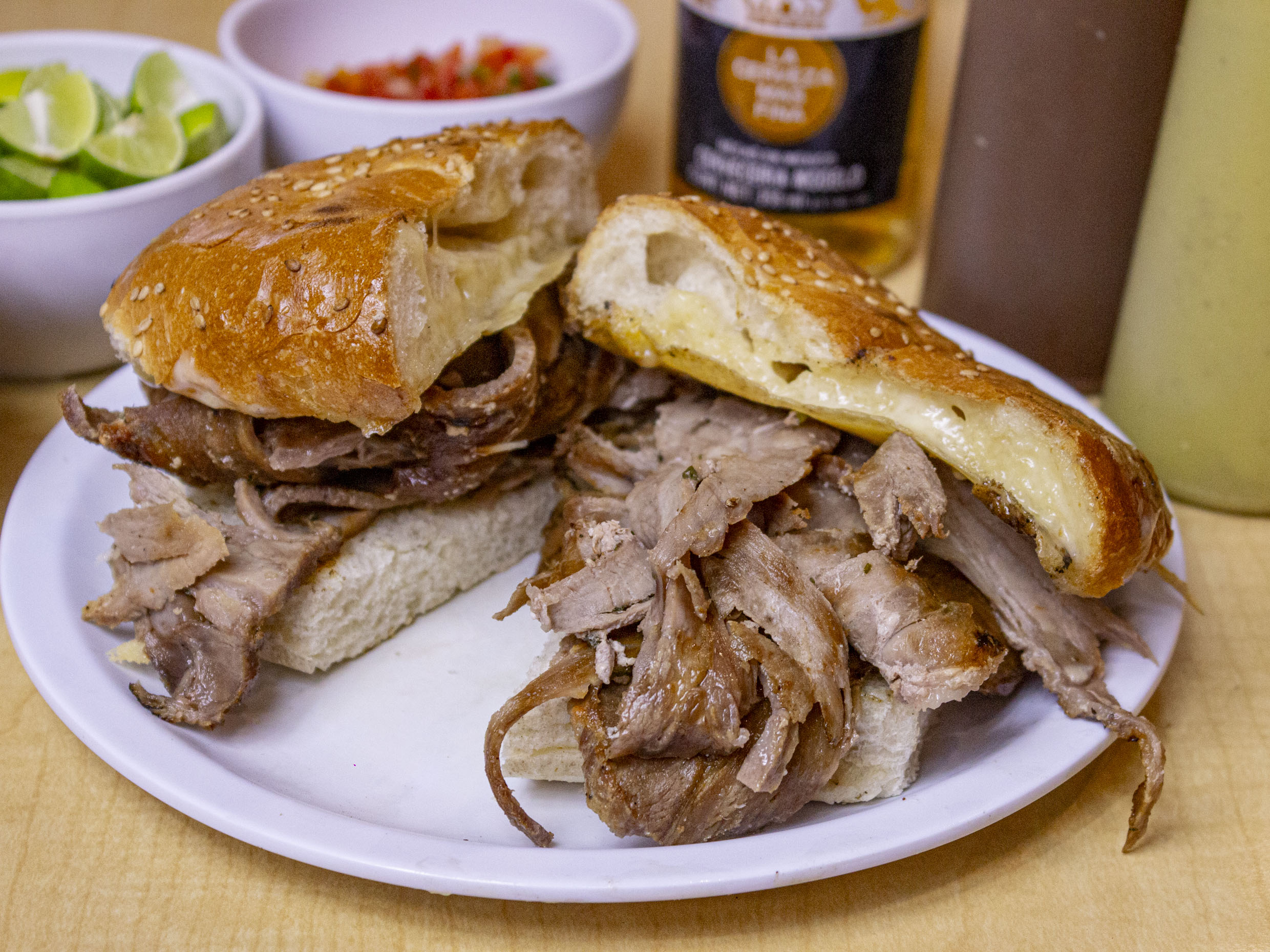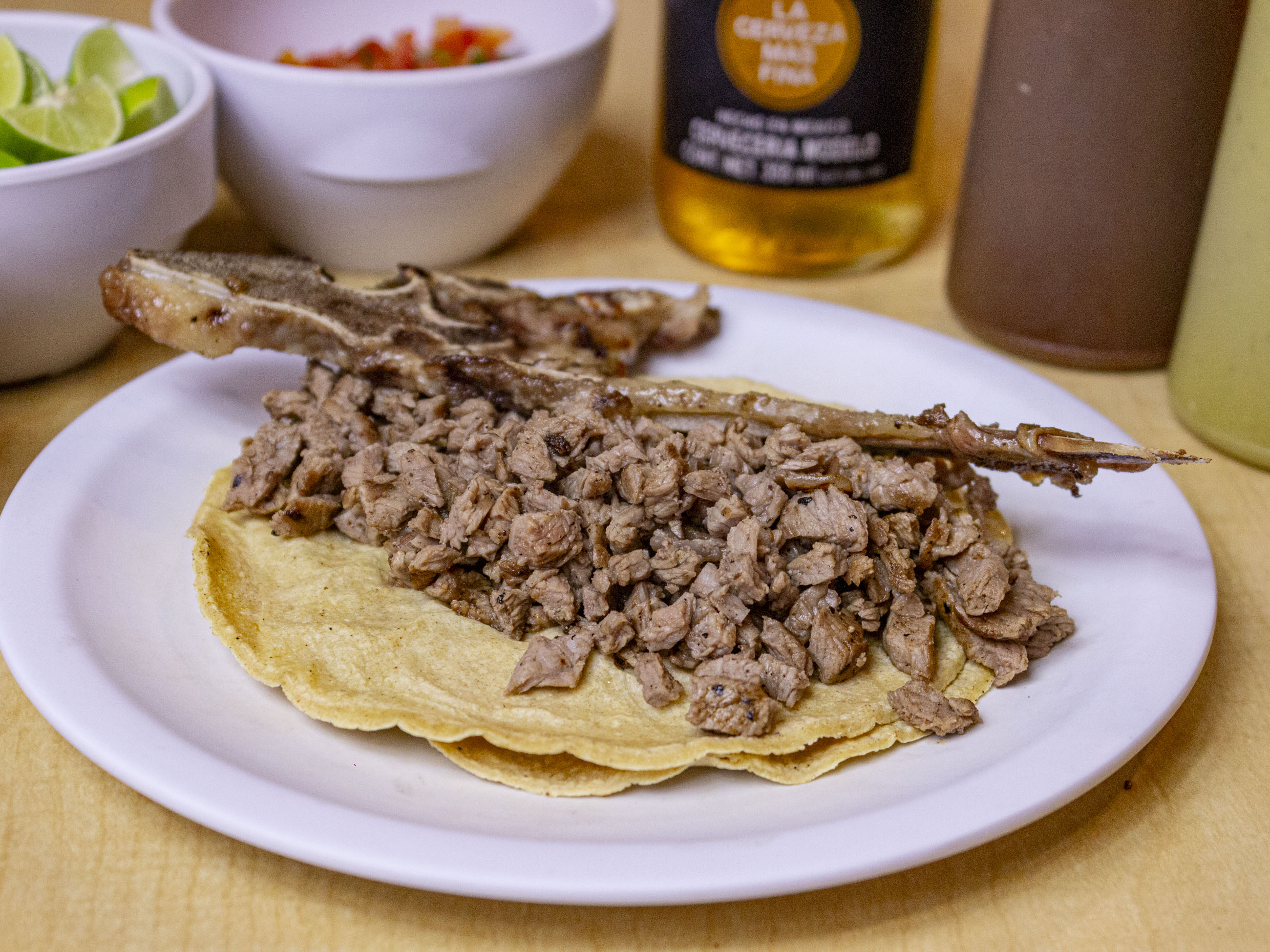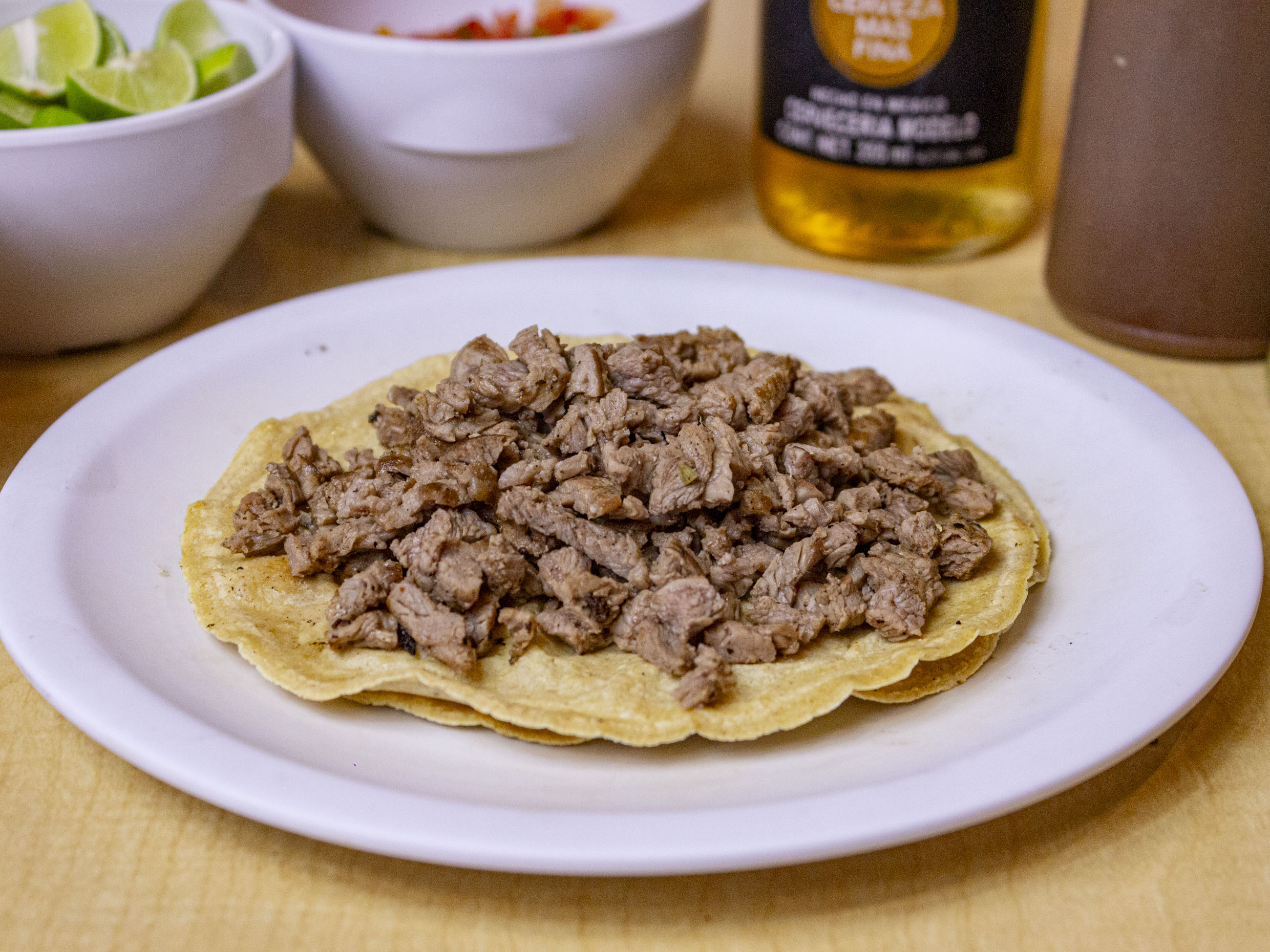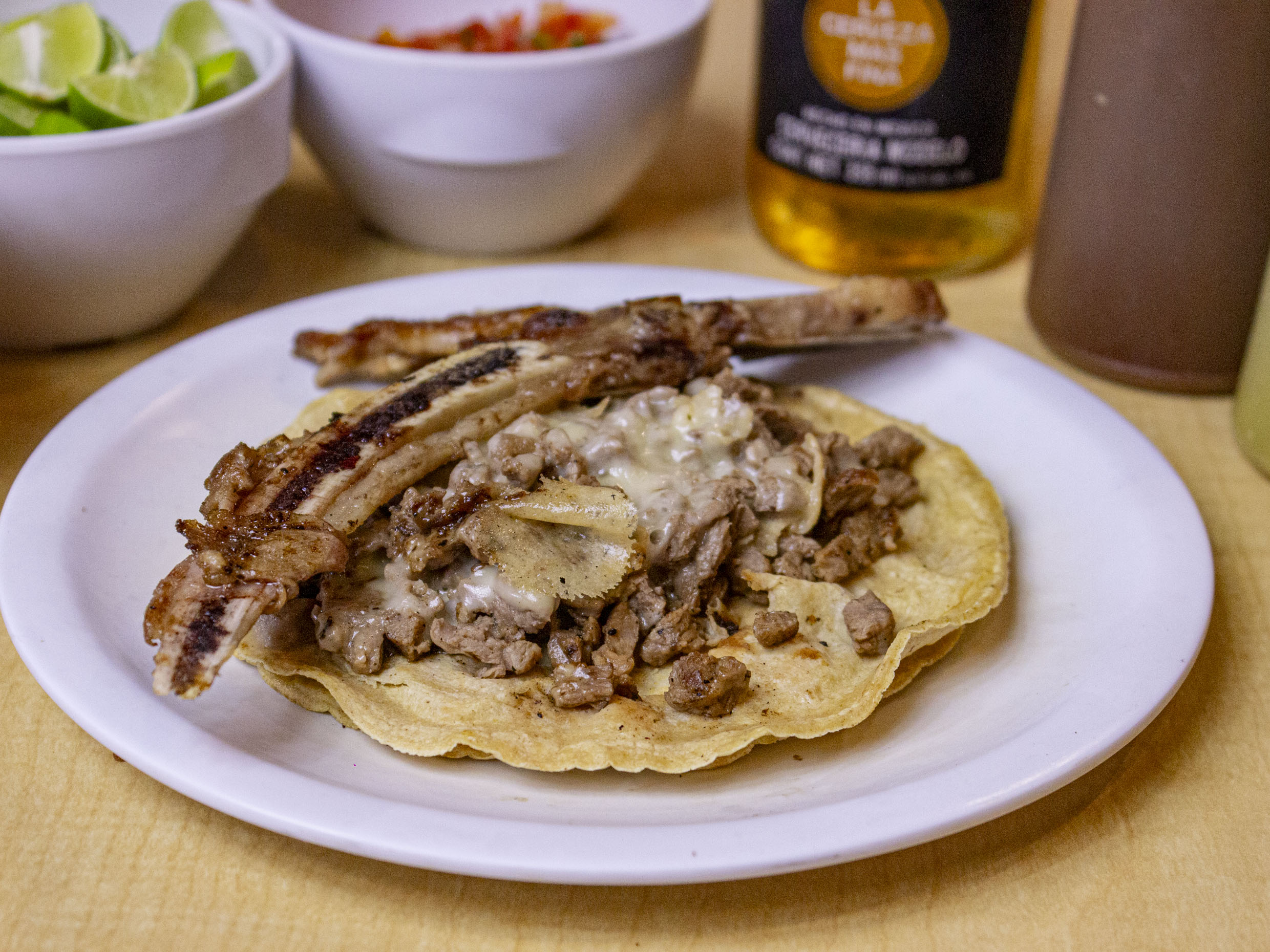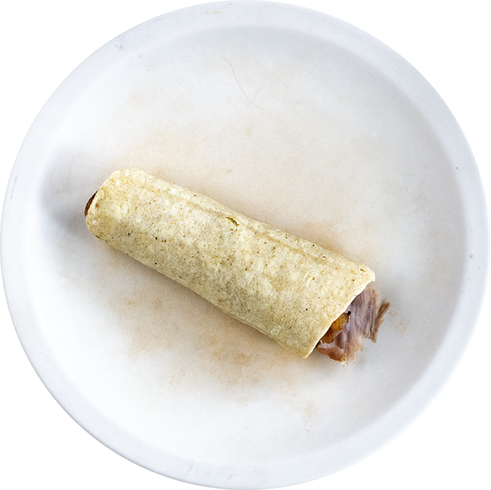 Torta Árabe con Queso Gouda, Carne Árabe y Salsas verde y Roja a parte para el gusto del cliente.