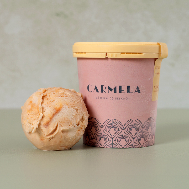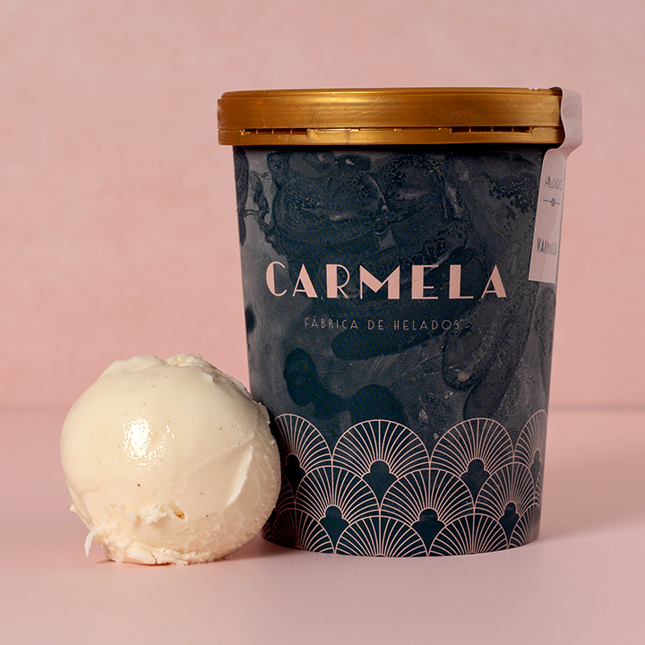 Cremoso helado sabor vainilla, elaborado con vaina natural.
