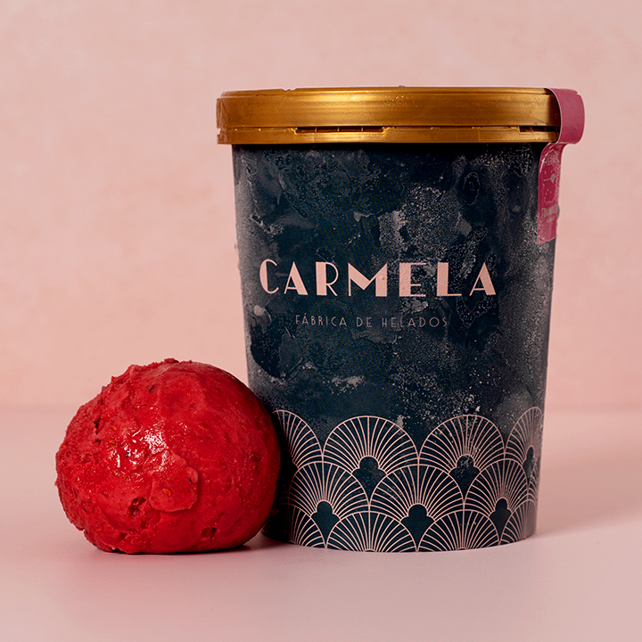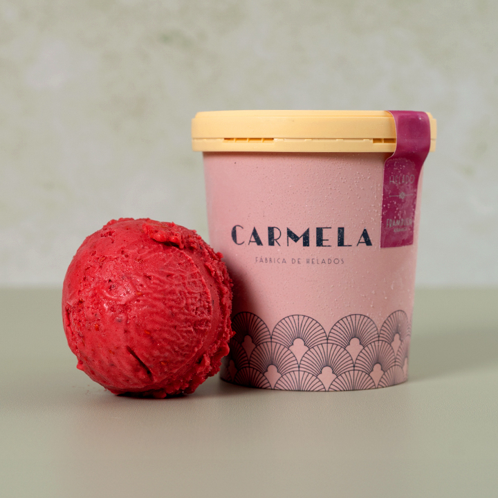Sorbete de frambuesa con un toque de albahaca (no contiene lácteos).