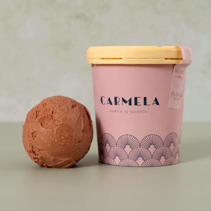 Delicioso helado de Nutella con trocitos de chocolate KitKat.