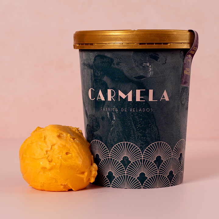 Delicioso helado de yogur con un dulce crocante de miel de abeja.