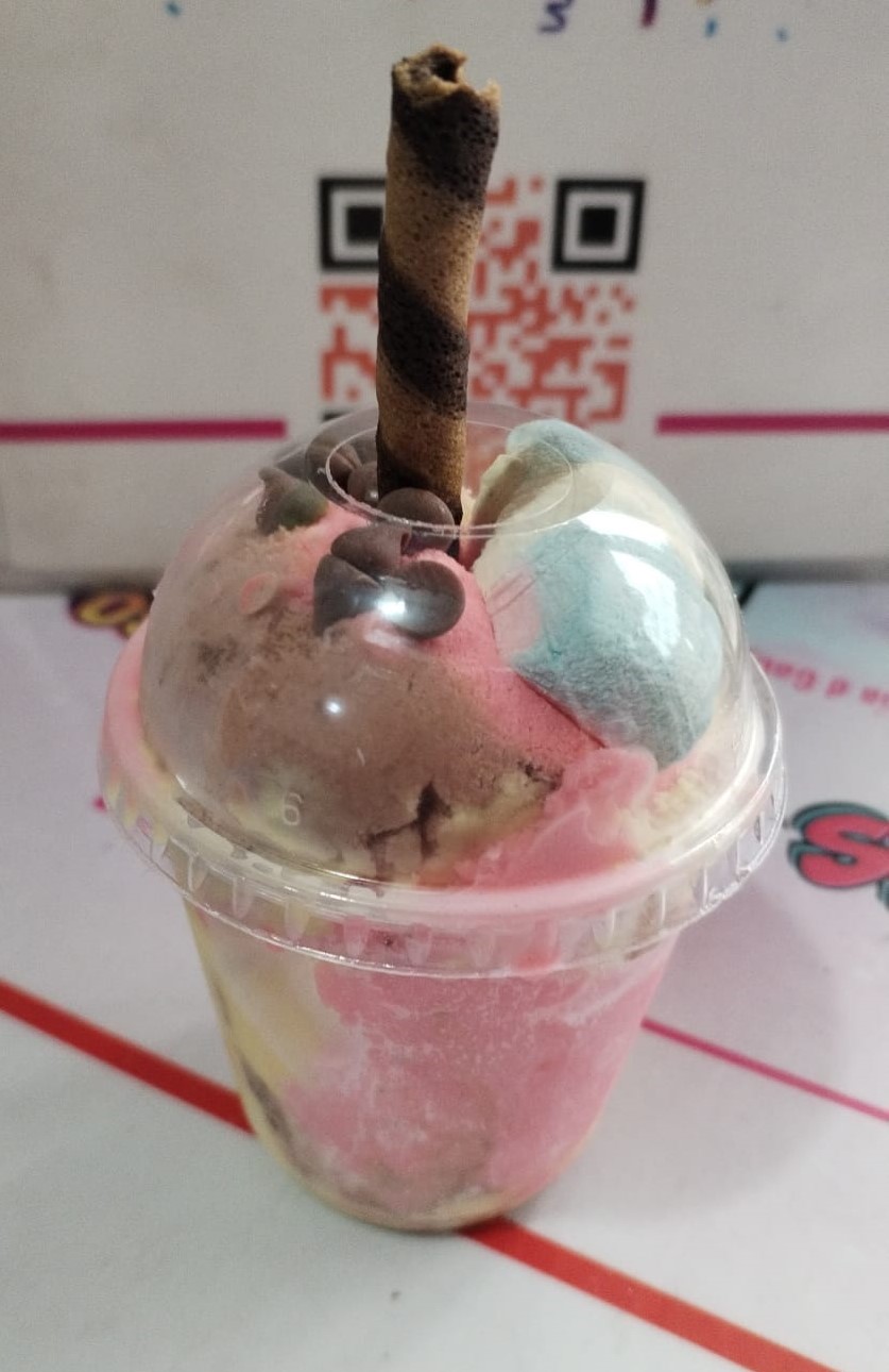 Cremoso helado con deliciosos y explosivos sabores