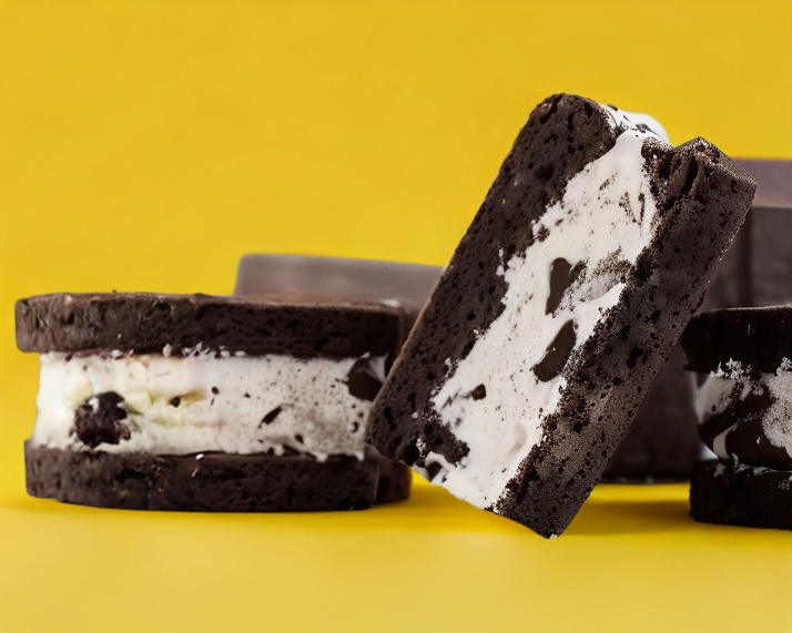 Galleta rellena de helado de chocolate.
