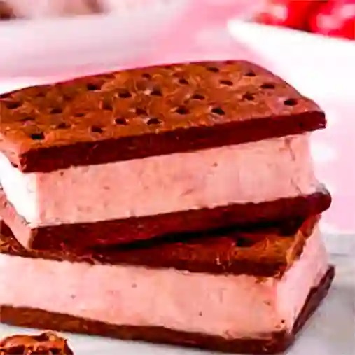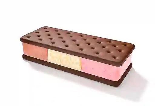 Galleta rellena de helado napolitano.