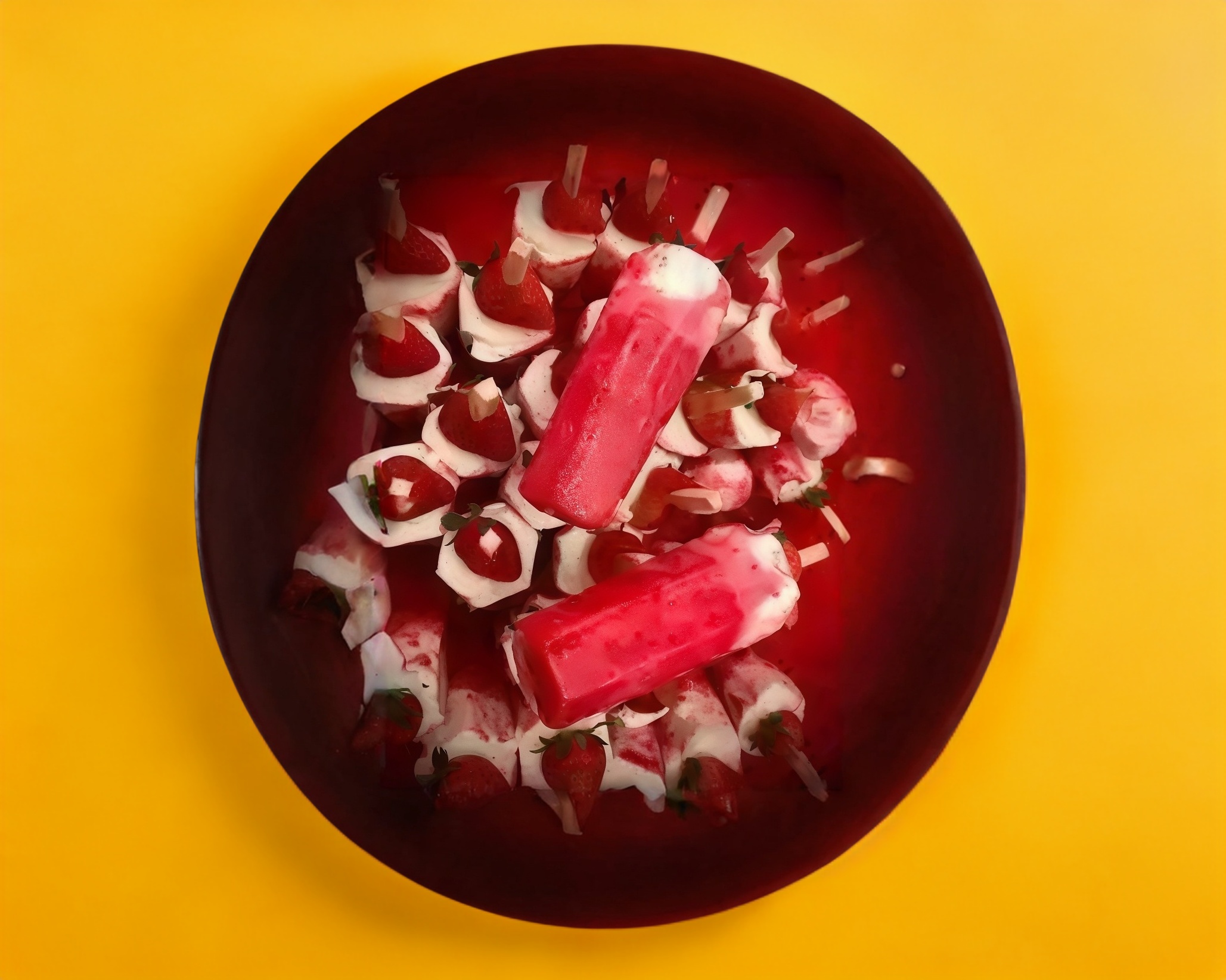 Paleta de fruta de fresas con crema.
