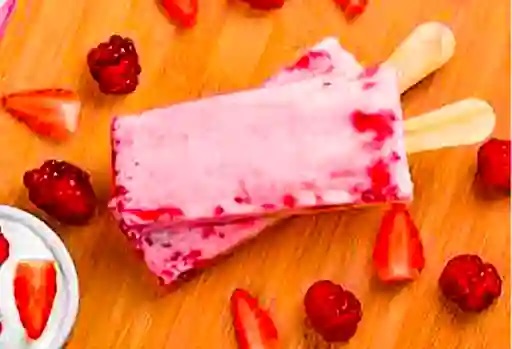 Paleta sabor fresa de agua con crema por dentro.