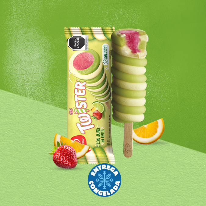 La combinación refrescante de fresa, limón y piña en una paleta súper divertida. Un torbellino de sabor, Twister® tiene una forma única y divertida que te encantará. Cada paleta tiene un contenido de 70ml.