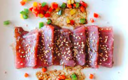 Combinación de filete y verduras, elaboradas a la plancha en nuestra cocina, acompañadas con salsa de ajonjolí y gohan.