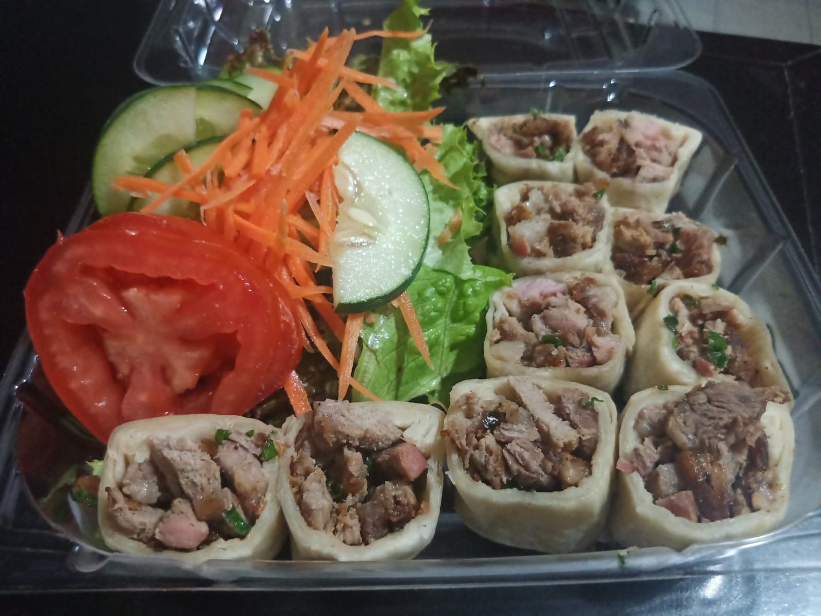 Gohan Hiroshi, rollo ai oi rollo, 2 brochetas de fruta, ensalada tropical,