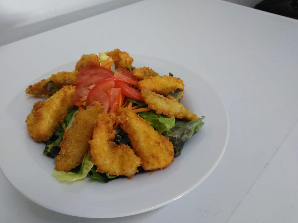 Doraditos trozos de camarón al tempura, marinado con salsa de limón.