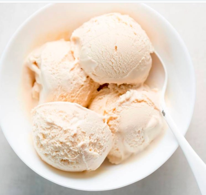 120 g plátano macho empanizado con bola de helado de vainilla con aderezo a elegir.