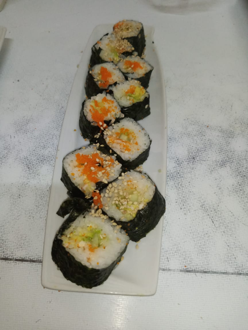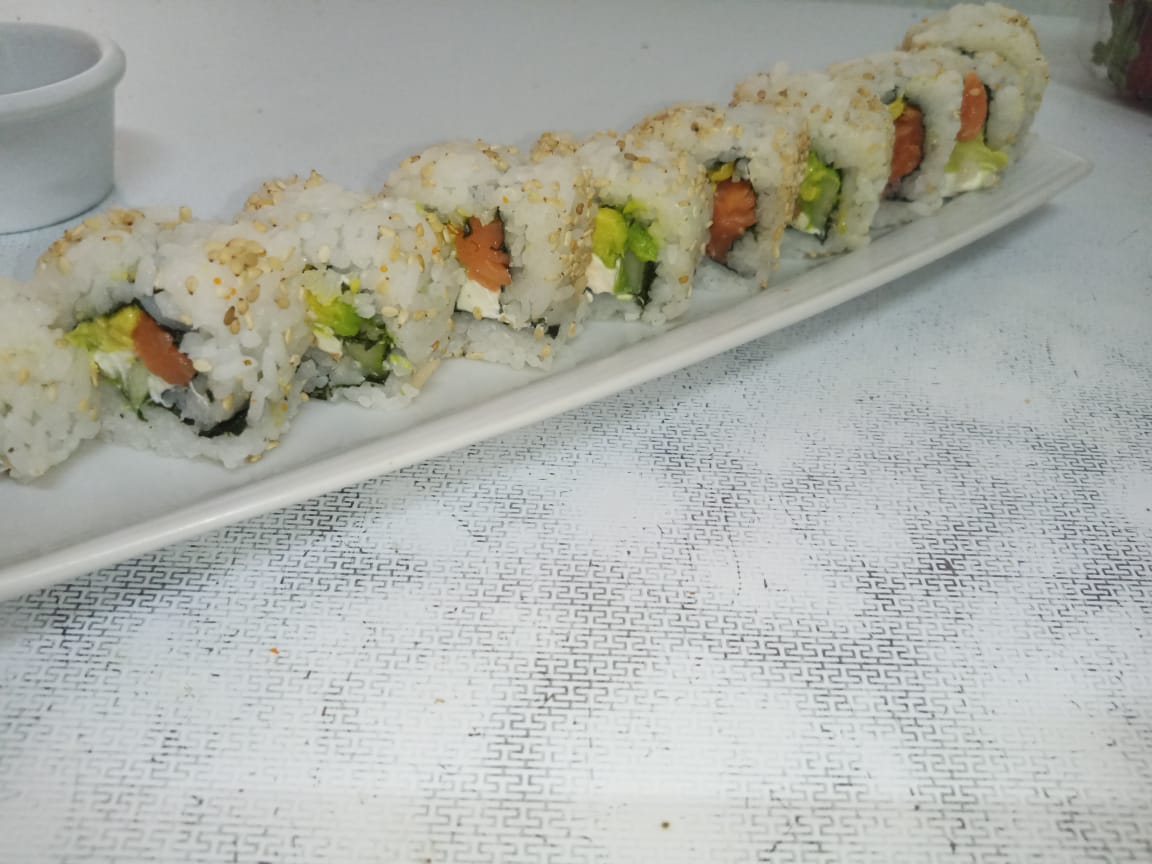 Rollo tradicional de 10 piezas, con pepino, aguacate, queso y ajonjolí.