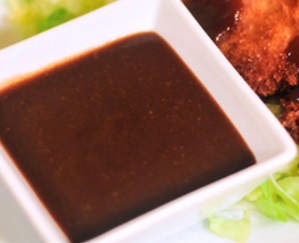Pechuga de pollo frito estilo japonés, marinada en salsa torino, con bastones de pepino