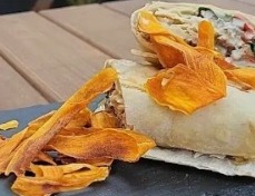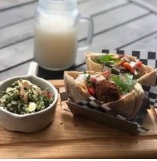 Fino rollo de pan ancestral árabe envuelto con una capa de falafel, es preparado al grill y servido en concepto plant food, 250 gr.