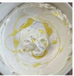 Mousse natural lácteo, con dos puntos de sal, inspirado en yoghurt, acompañado con una hoja de pan pita al horno. 130 gr.