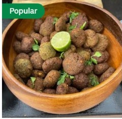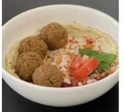 8 esferas de garbanzo crocantes sofritas, sazonadas con especias del Medio Oriente, bañadas con salsa tahini (de ajonjolí). 130 gr.