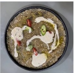 Puré de berenjena tatemada, acompañado con una hoja de pan pita al horno. 130 gr.