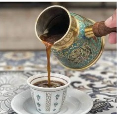 Café tradicional del Medio Oriente con notas a cardamomo, hecho en dallah, turca de cobre, 12 Onz. No contiene azúcar.