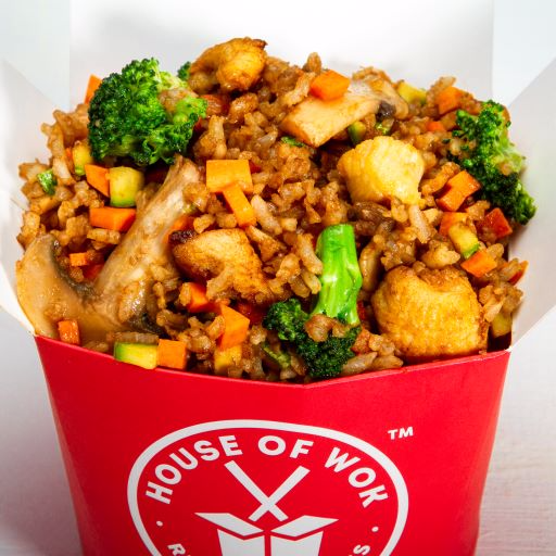 Arroz frito con pollo, zanahoria, calabacita, brócoli, germen de soya y huevo en salsa de soya especial.