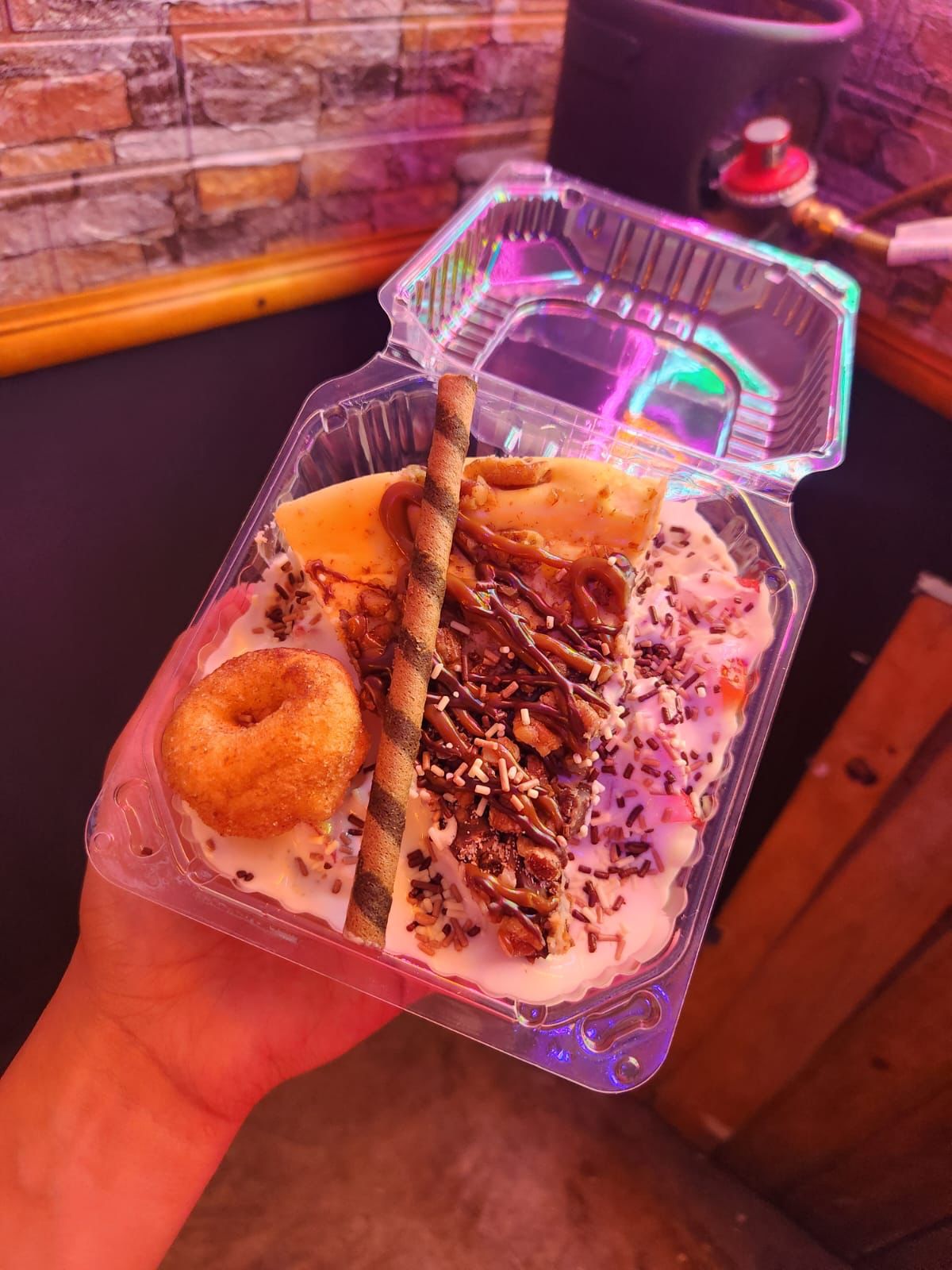 Acompañados con crema batida fresa, lechera, mermelada y chocolate
