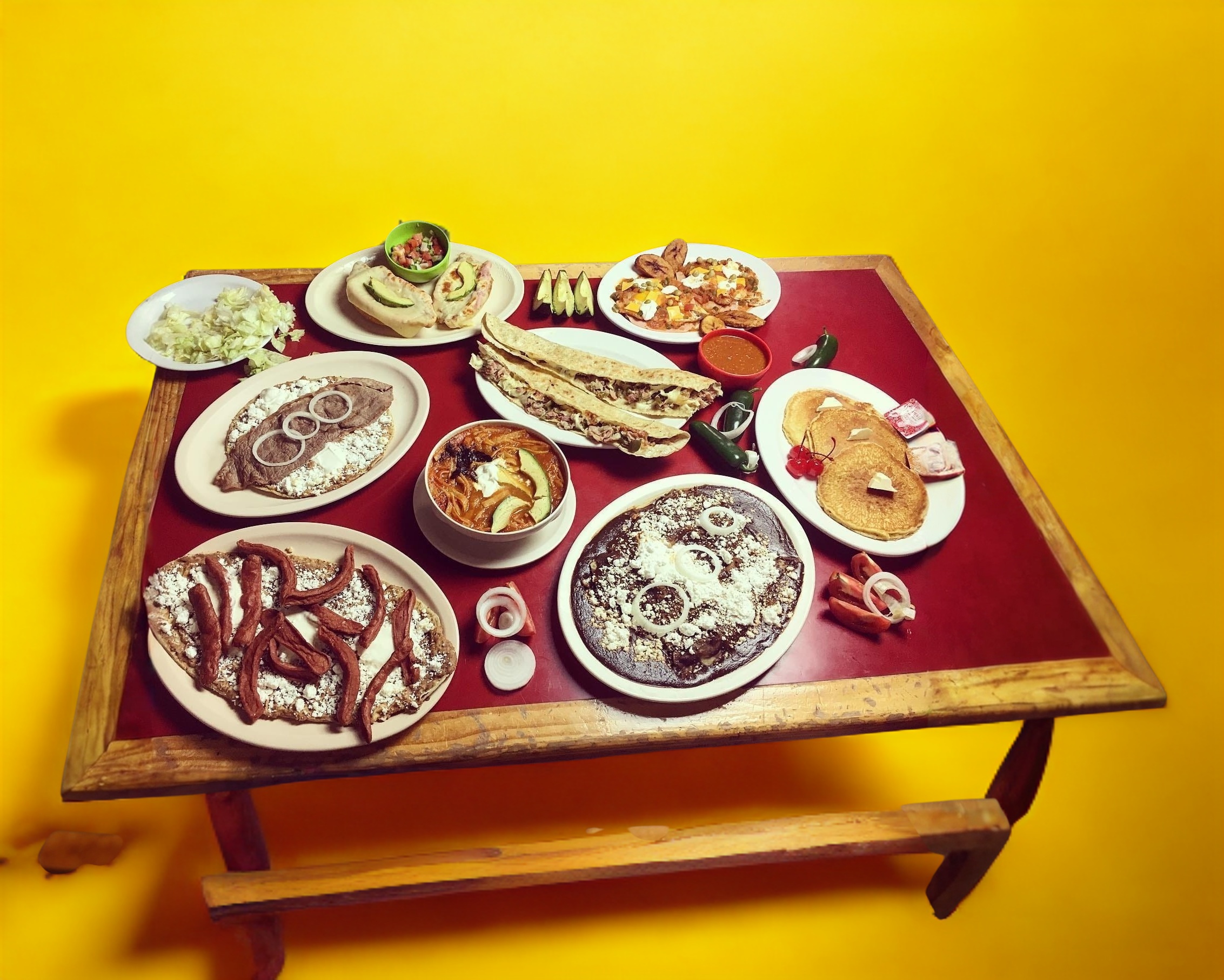 HUARACHE DE MASA DE MAIZ, RELLENO DE FRIJOLES, FRITO EN ACEITE Y ACOMPAÑADO DEL GUISADO DE TU ELECCION, SALSA, QUESO RAYADO Y VERDURAS.