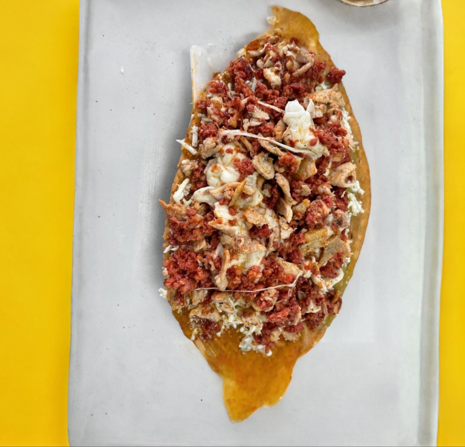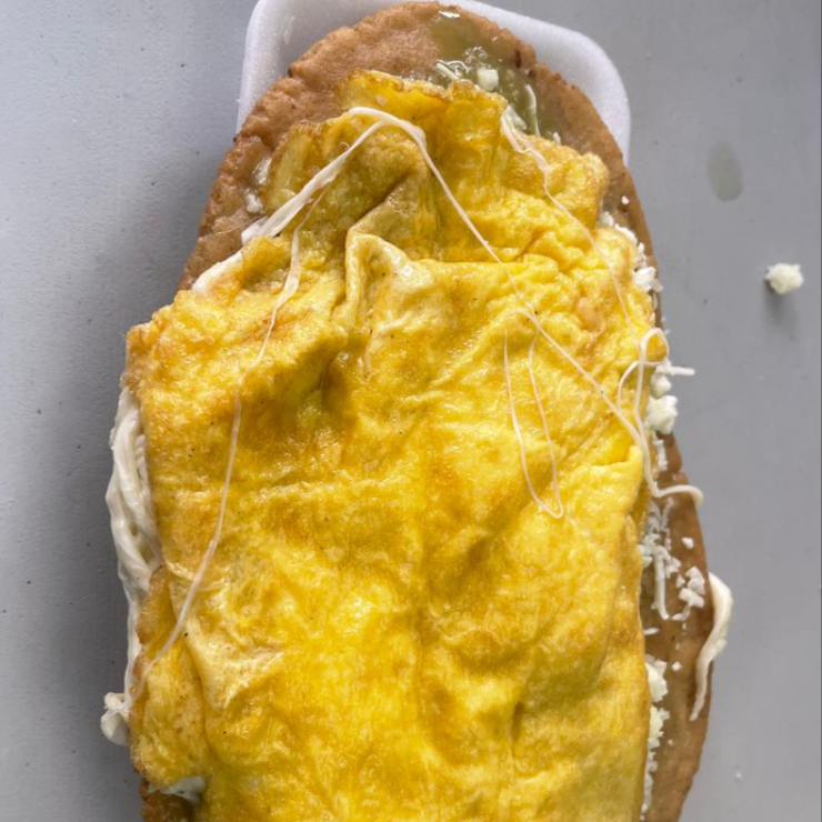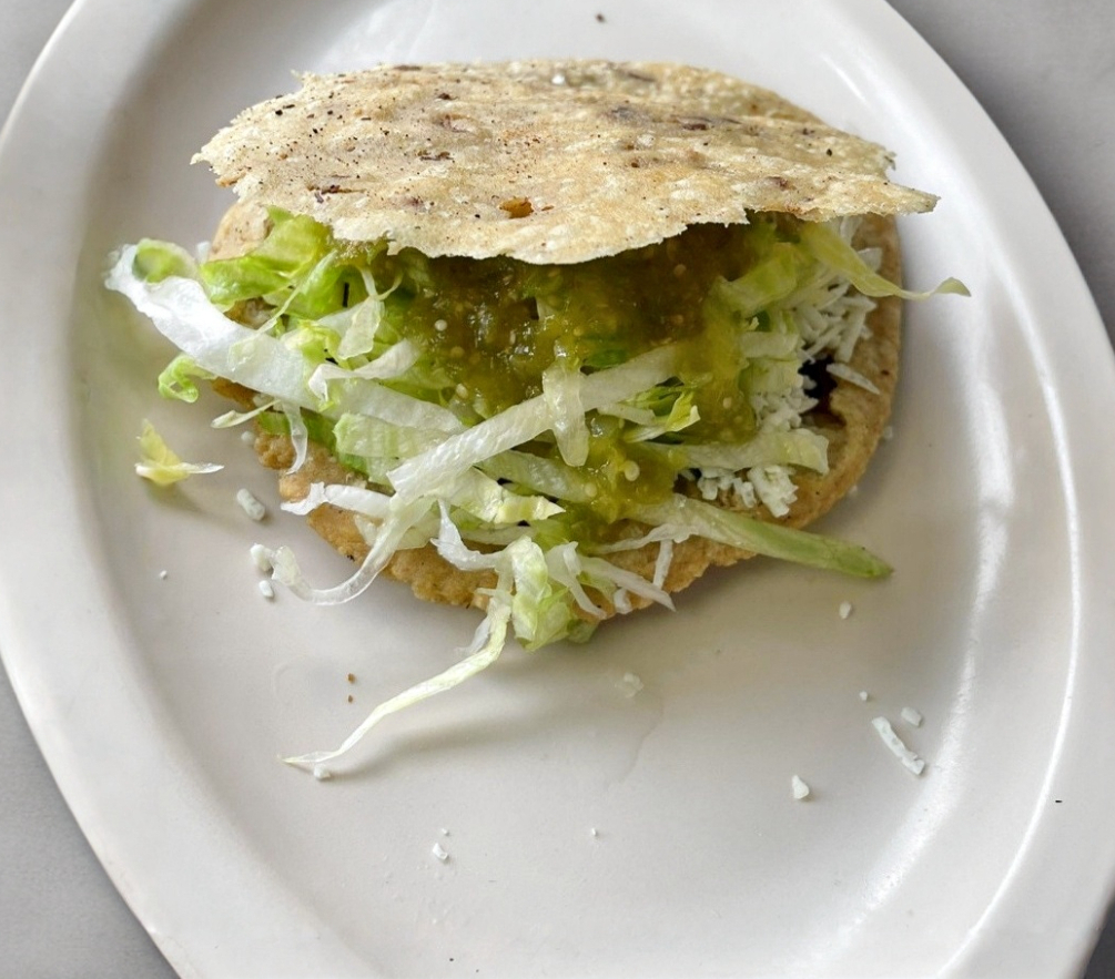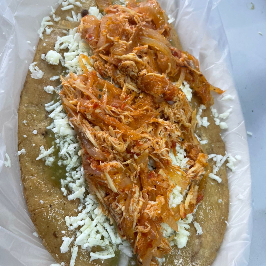 elaborada de masa de maíz rellena de chacharon prensado. Acompañado de lechuga, queso rallado y salsa del día.