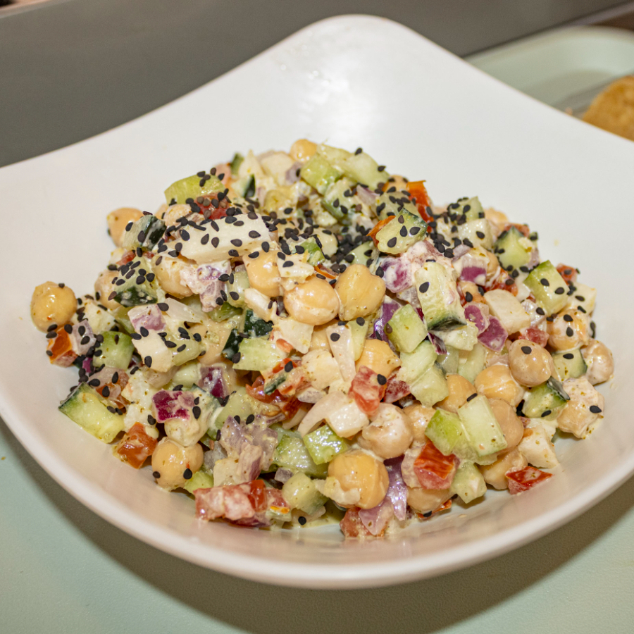 Delicioso ceviche de garbanzo con ajonjolí.