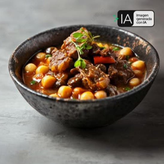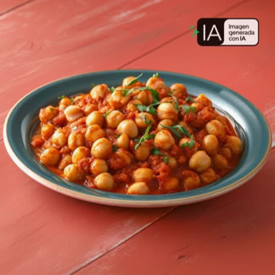 Deliciosos garbanzos cocinados en una exótica mezcal de especias de la India. Foto creada con AI.