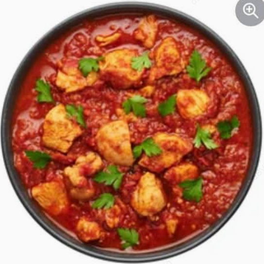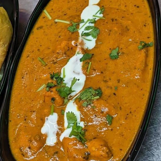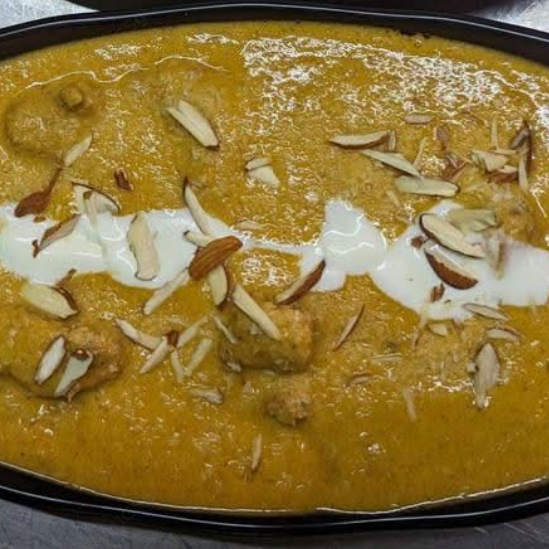 Pollo cocinado en salsa cremosa de nuez de la India.