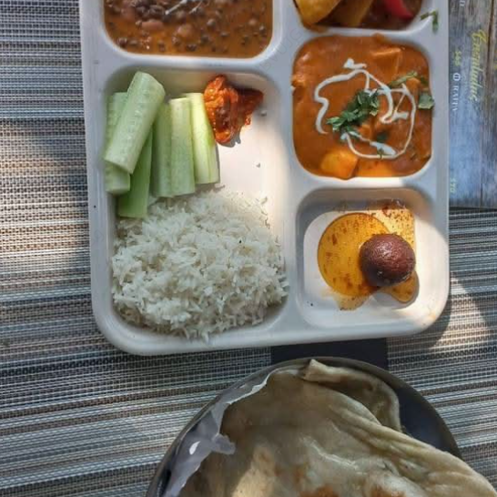 Delicioso curry de garbanzo con tortilla frita de harina blanca.