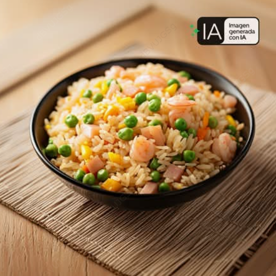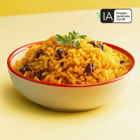 Arroz cocinado con limón, semillas de mostaza y cacahuate.
