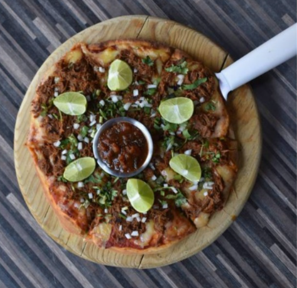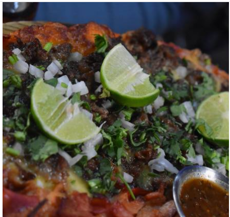 Base de queso con birria de res, cilantro, cebolla, limón y salsa de la casa. *Birria: ch 160gr. | med 250gr. | gde 420gr.*