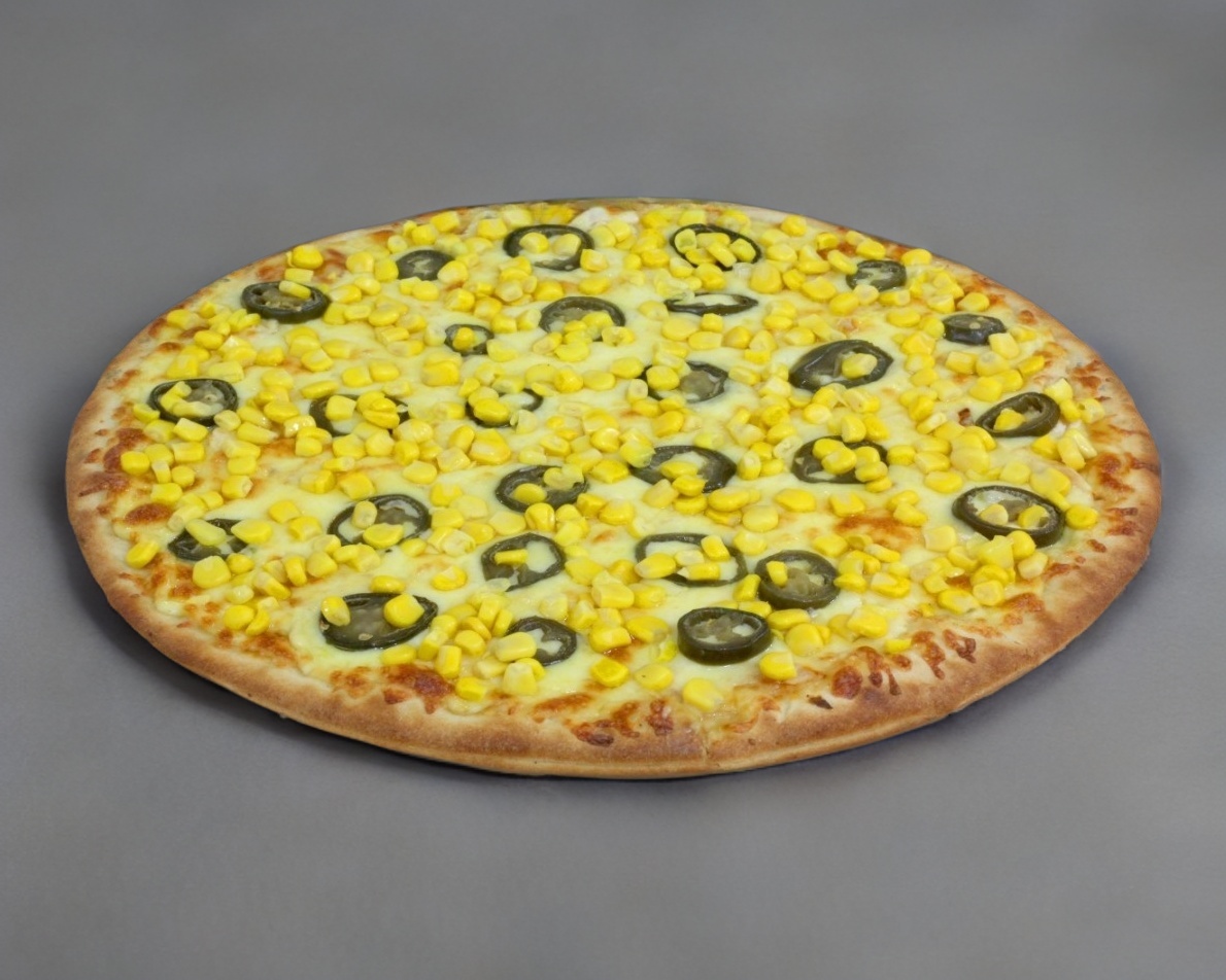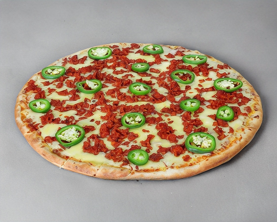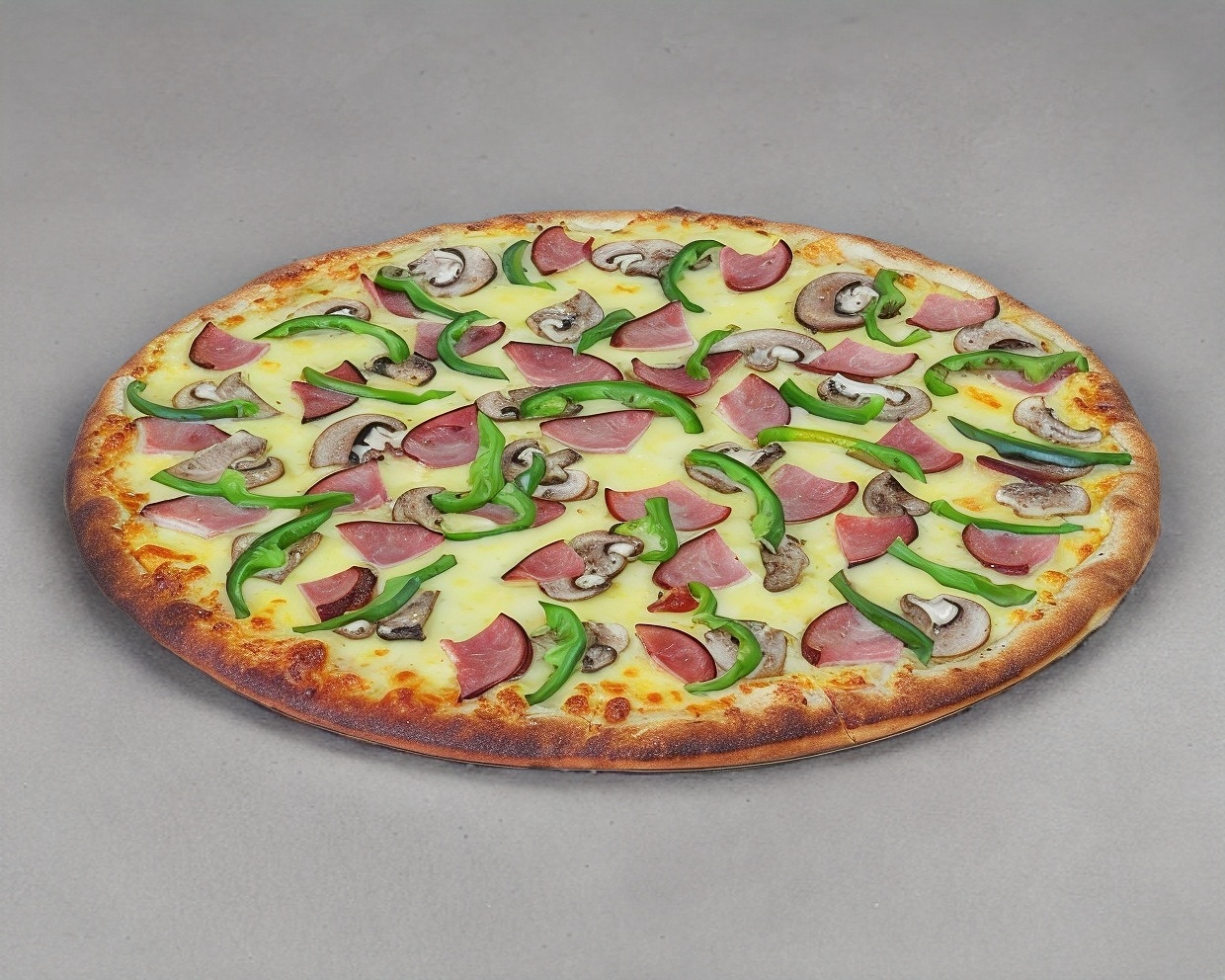 Champiñón, pimiento verde, cebolla, aceitunas y rajas de jalapeño.