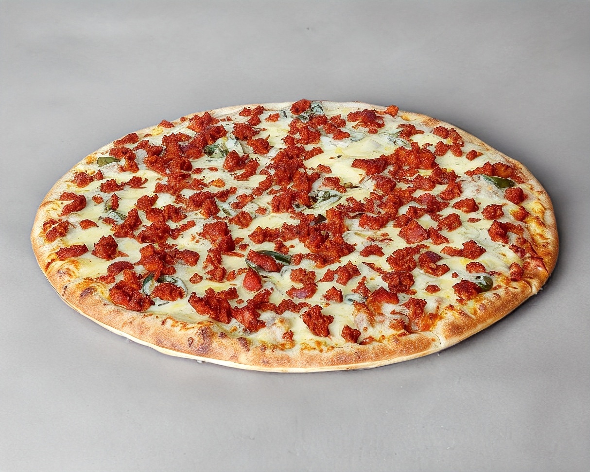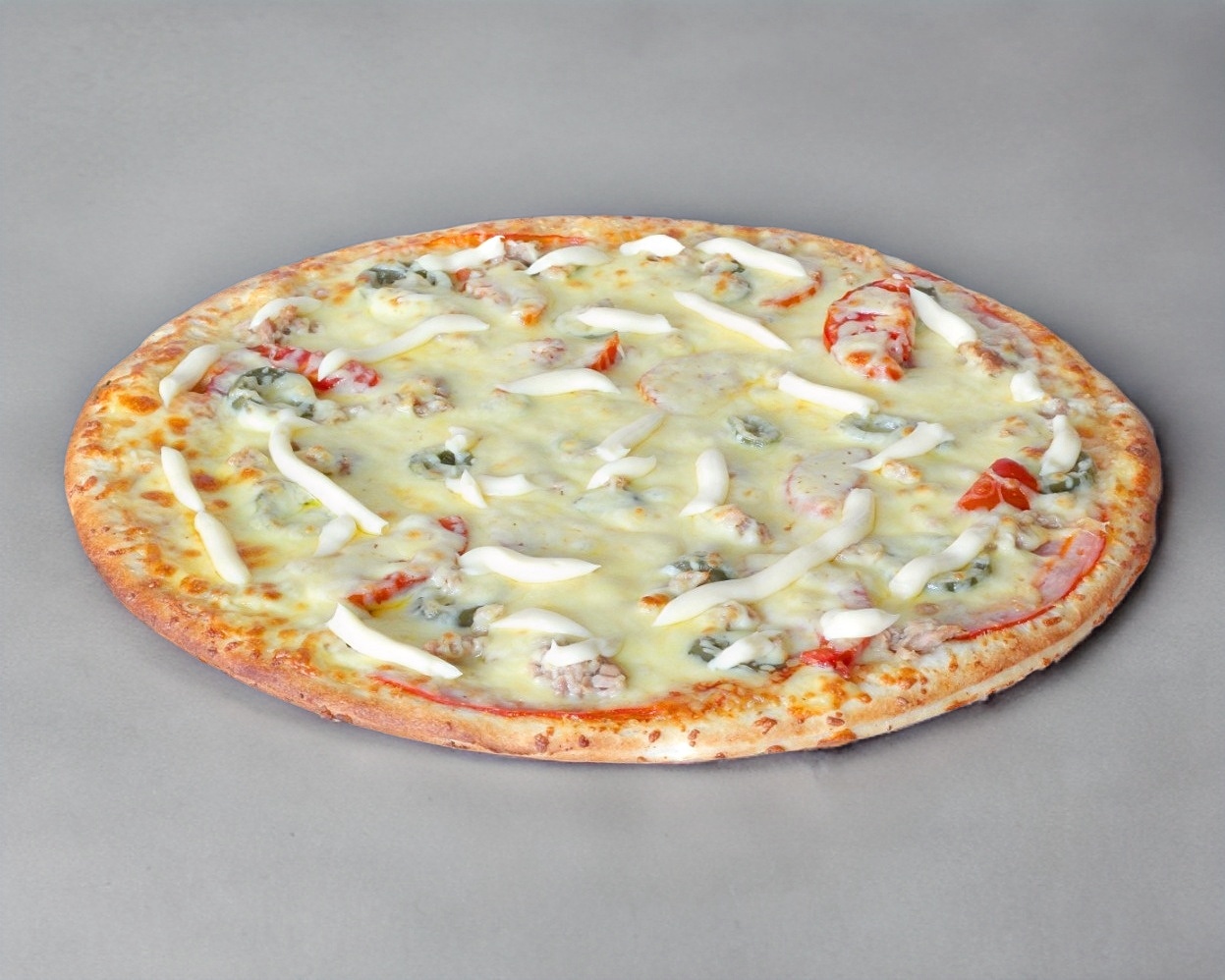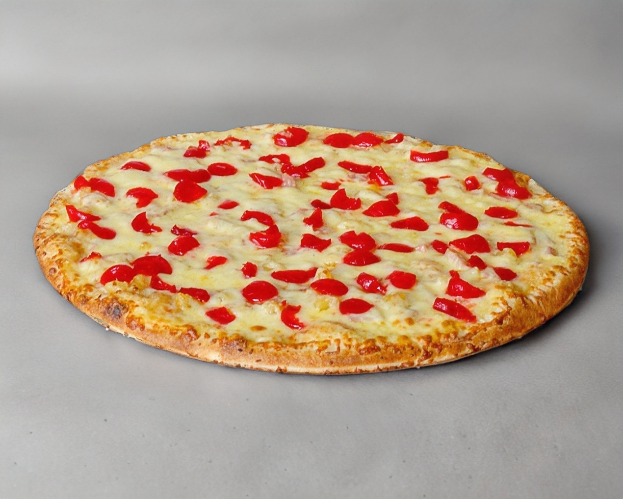 Champiñón, pollo, salsa de tomate y queso gratinado.