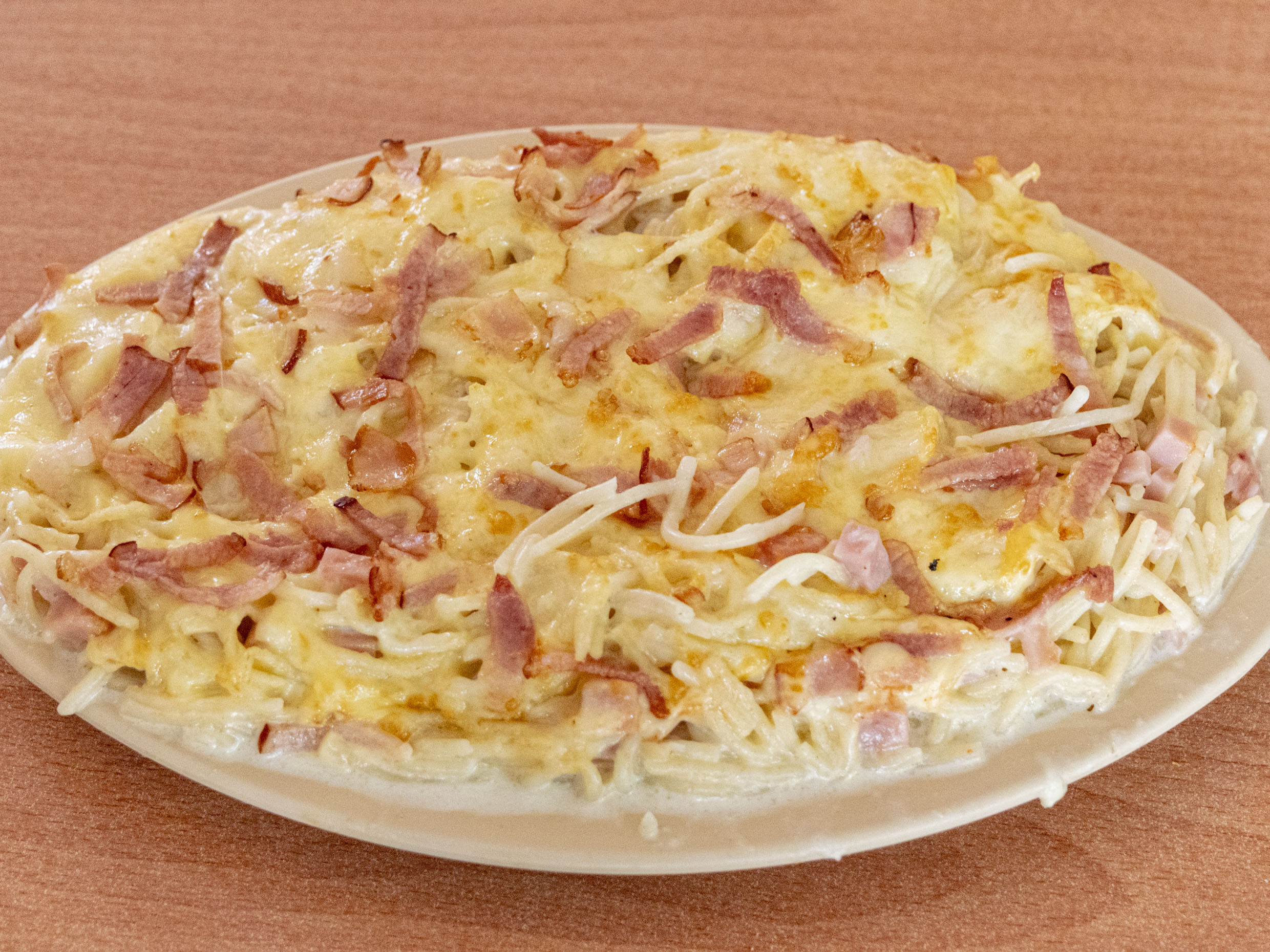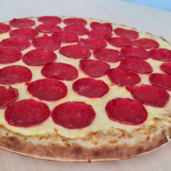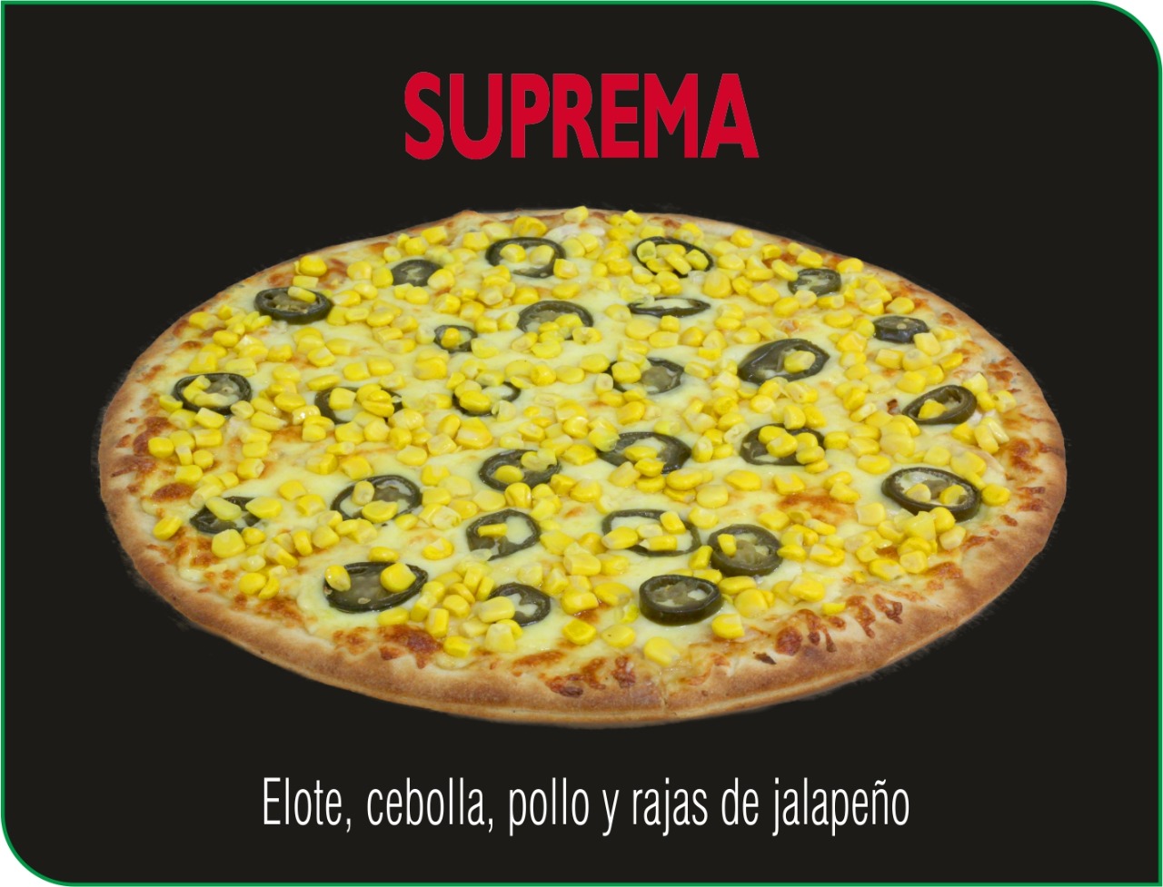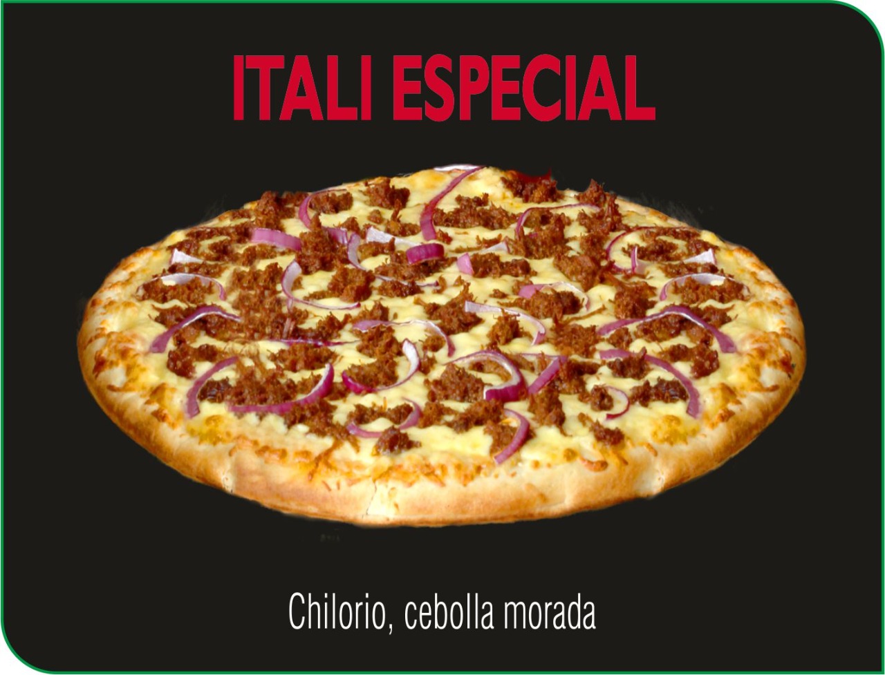 Jamón, salami, champiñón, chorizo, pimiento verde y cebolla.