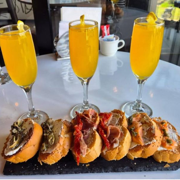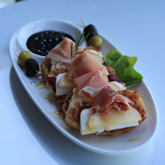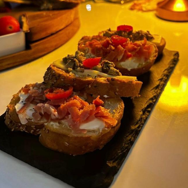 4 piezas de tapas españolas con queso filadelphia, tomate deshidratado, aceite de oliva