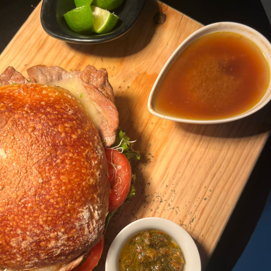 Picaña y Rib Eye, Angus, cebolla sofrita, toque de chile serrano, pomodoro, albahaca, y pimienta