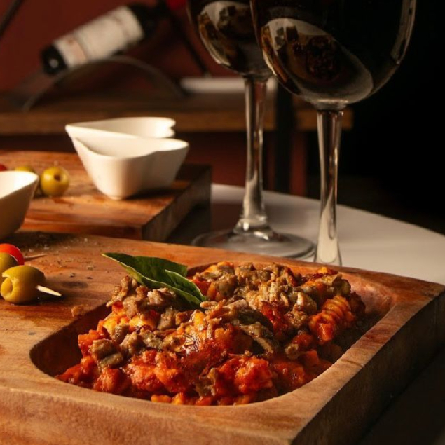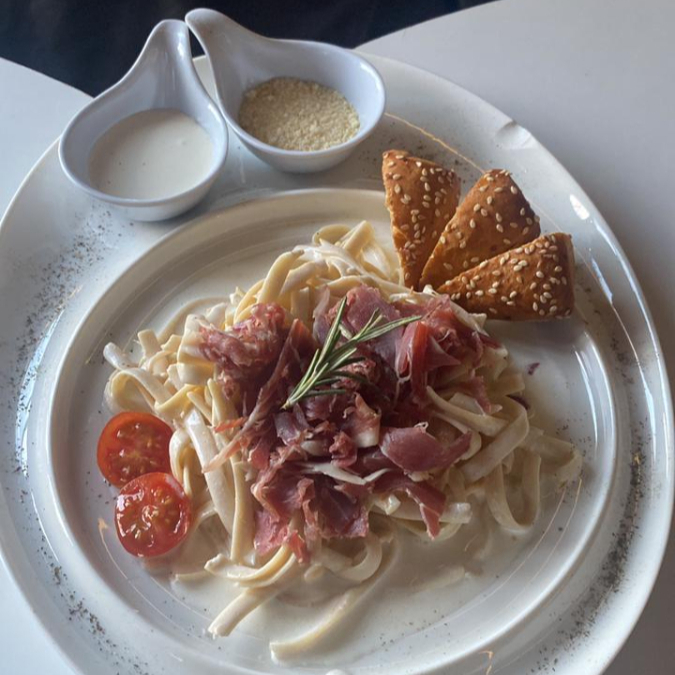Salsa bologna, crema, parmesano y arrachera
