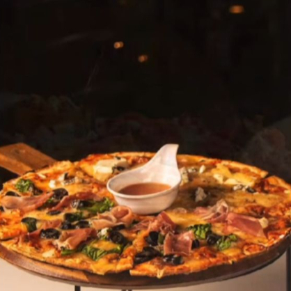 A elegir queso panela o oaxaca y dos complementos (jamon, tocino, espinaca, champiñon o salchicha) acompañado de ensalada y aderezo