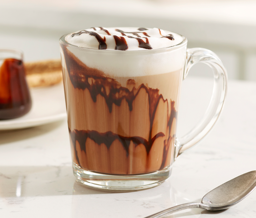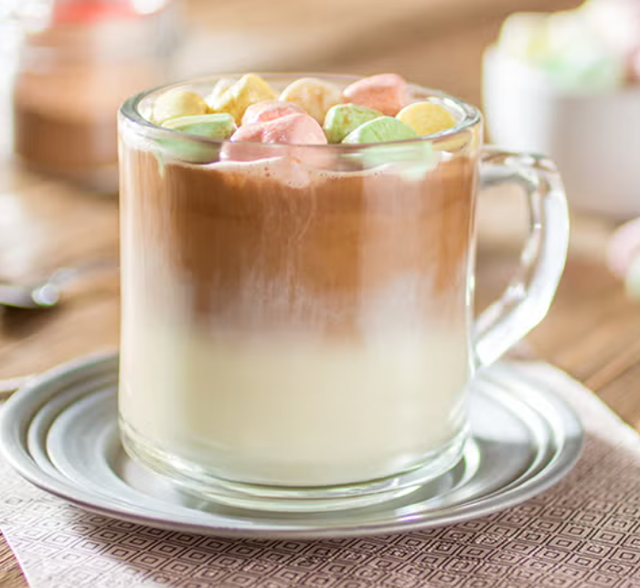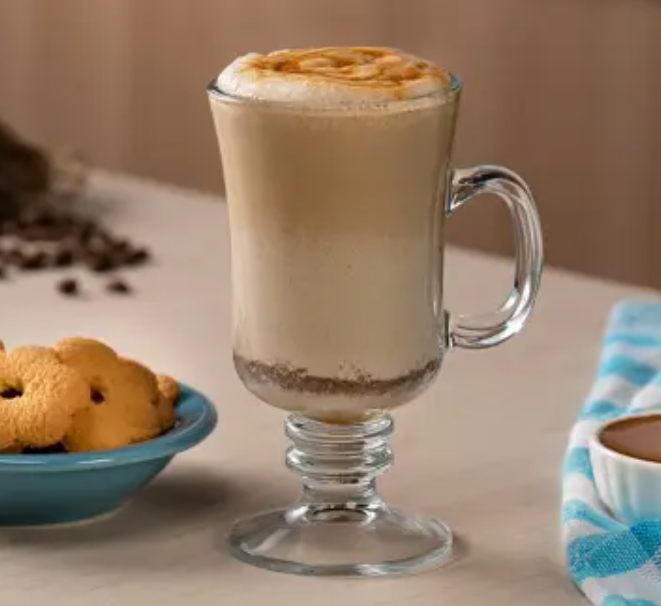 Suave crema, sabor a café, servida sobre leche fría o caliente.