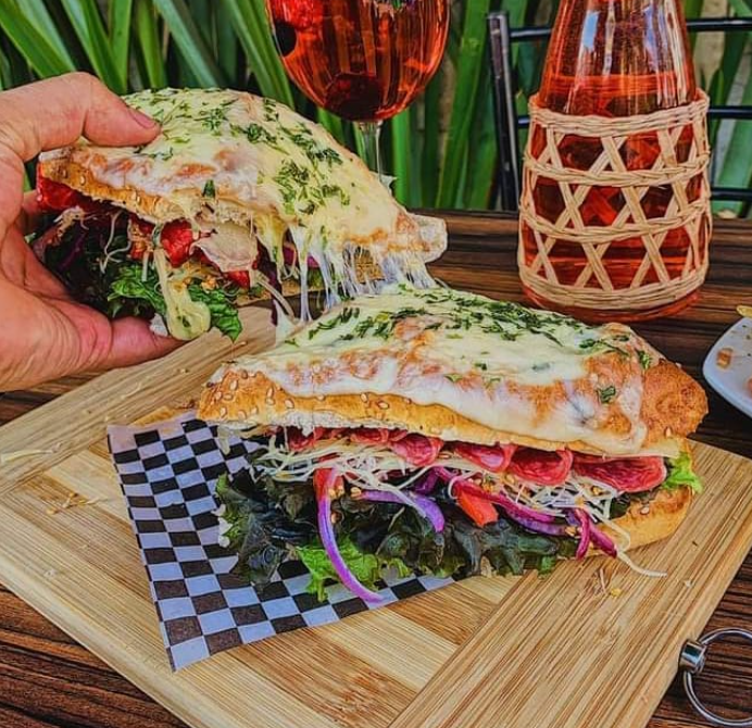 Nuestra famosa baguette gratinada, con queso gouda encima, con los aderezos da la casa, lechuga, jitomate, cebolla, queso parmesano por dentro y la proteína de tu elección.