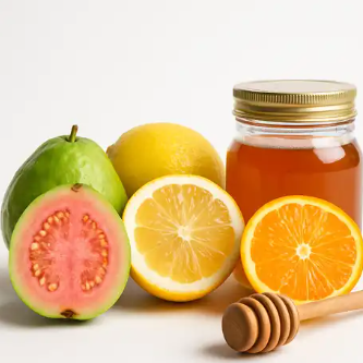 Guayaba, limón, naranja, miel. Alto en vitamina C, refuerza el sistema inmunológico.