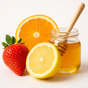 Fresa, naranja, limón, miel. Alto en antioxidantes, combate el daño celular.