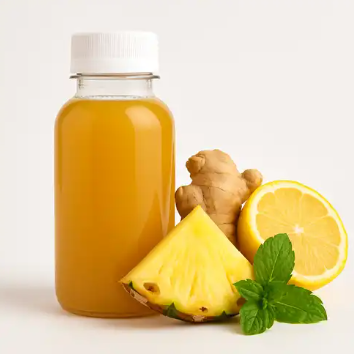 Piña, jengibre, limón, menta. Antiinflamatorio y analgésico, alivia los dolores menstruales.