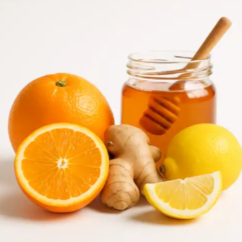 Naranja, jengibre, miel, limón. Alto en vitamina C y antioxidantes, combate infecciones.