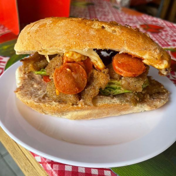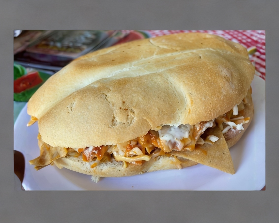 suabe y deliciosa telera rellena de queso manchego con frijoles mayonesa lechuga picante aguacate y jitomate
