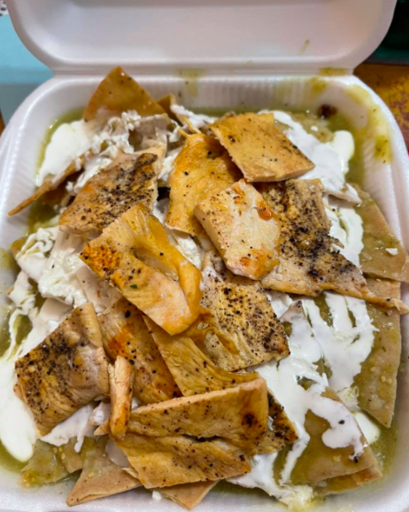 Totopos crujientes bañados en salsa verde o roja, con crema y queso. Acompañados de un bolillo. (Porción personal 500 g)
